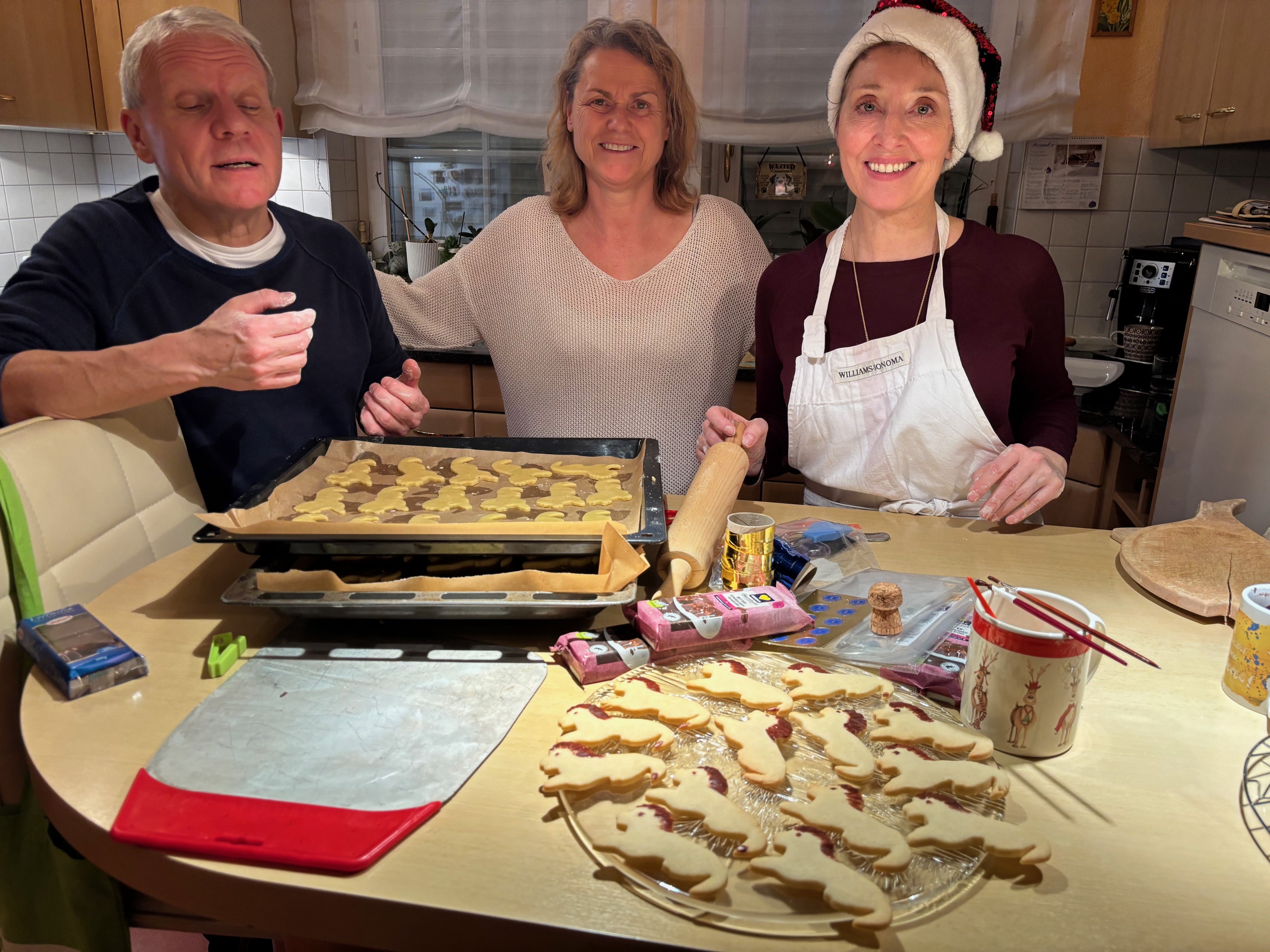 Dann kurz darauf am 9. Dezember eine Back-Aktion. Drei Lions-Freunde hatten schon zu Anfang des Präsidentenjahres von Gabi Nonnenmacher das Los gezogen, in ihren Küchen zusammen mit anderen Clubkameraden Ausstecherle in Löwenform herzustellen und liebevoll zu verpacken. Das hat auch gut geklappt und sorgte für jede Menge Spaß in den jeweiligen Gruppen.